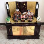 金屏風と蒔絵調の華やかな意匠が美しい、親王飾りのひな人形です ...